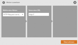 Wurde die Aktion „HTTP-Request“ für eine Taste ausgewählt, kann in dem Einstellmenü eine URL eingegeben werden, die beim Drücken der Taste ausgesendet wird.