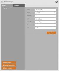 Drücken Sie dazu zunächst die Taste „Geräte importieren“ im Gerätemanager. In dem sich öffnenden Import-Fenster, wählen Sie bitte zunächst „Sonos“ aus der angebotenen Liste aus. Anschließend werden die dort gespeicherten Geräte ausgelesen und aufgelistet und können anschließend per Haken selektiert und importiert werden. Dabei wird immer ein zusätzliches virtuelles Gerät (Virtual Master) angezeigt. Dieses virtelle Master-Gerät ist systembedingt zur Steuerung über die Mediaplayer-Elemente (Liste, Bedienung) notwendig (s.u.) und muß deshalb mitimportiert werden.