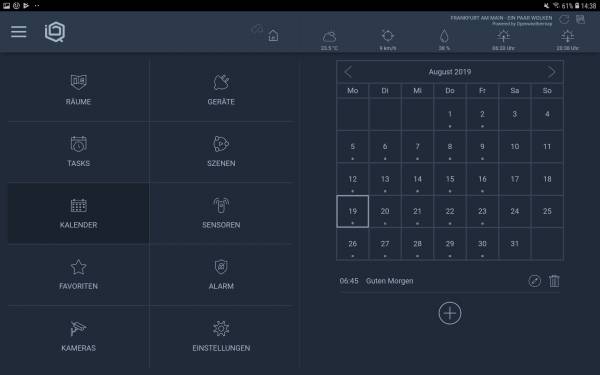 Auf der Startseite finden Sie die Kachel Kalender. Wenn sie diese anklicken, erhalten Sie ein aktuelles Kalendarium, in welchem diejenigen Tasks eingetragen sind, die an bestimmten (Wochen-)Tagen ausgeführt werden. So erhalten Sie schnell einen Überblick über Ihre zeitgebundenen Tasks. Im Kalender können Sie die aufgeführten Tasks auch bearbeiten oder löschen.