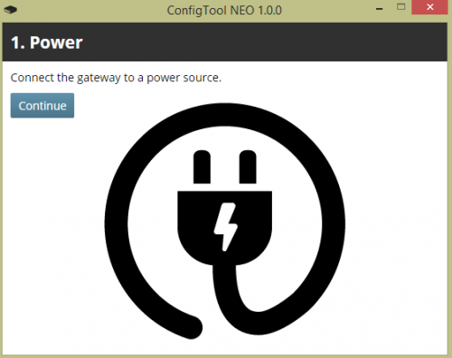 Connect the AIO GATEWAY to a power source. Then click on “Continue”.