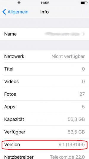 Um herauszufinden, welche iOS-Version auf Ihrem Mobilgerät installiert ist, öffnen Sie gehen Sie unter Einstellungen Allgemein auf Info.