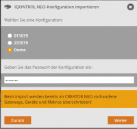 Import einer Konfiguration von IQONTROL NEO