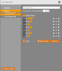 Ziehen Sie zum Duplizieren eines Makros das gewünschte Makro einfach per Drag & Drop mit der Maus bei gedrückter „Strg“-Taste auf eine Makro-Gruppe. Das Makro wird dann in dieser Makrogruppe mit gleichem Namen eingefügt. Ist dort bereits ein Makro dieses Namens gespeichert, wird das neue Makro mit einer Versionsnummer hinter dem Namen abgespeichert.