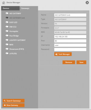 Integrate an AIO GATEWAY in the device manager