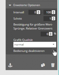 You can also use all roundsliders as analogmeters by disabling the operation for the roundslider and assigning the corresponding device status to the roundslider. Disable the operation in the right-hand property bar under “Advanced options”.