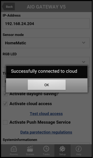 If the test has been successful you will receive a message that you have connected successfully to the cloud.