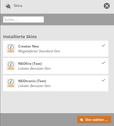 Hier werden Ihnen alle installierten Skins angezeigt.