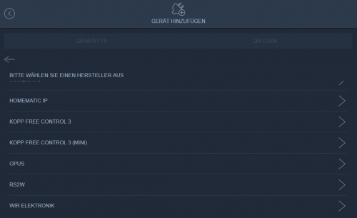 Um Kopp Free Control 3 Geräte zu integrieren, öffnen Sie das Hauptmenü und klicken auf Geräte hinzufügen.