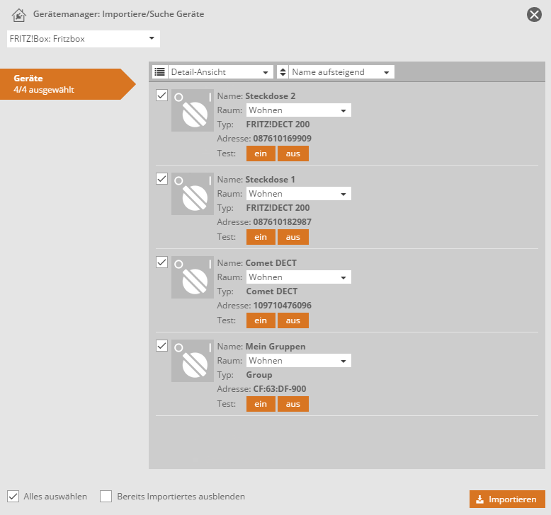 Geräte von AVM FRITZ!Box importieren