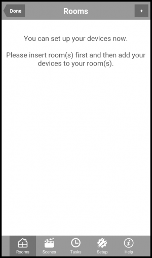 By tapping “Next” you will be directed to the “room”-page to add a room and assign several devices.