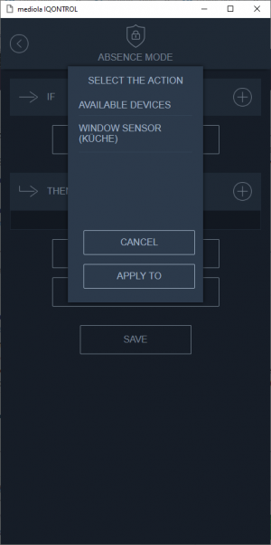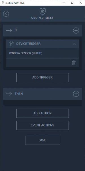 Tap “Add trigger”. Now all possible triggers are displayed. Triggers are limited to window sensors and motion detectors.
