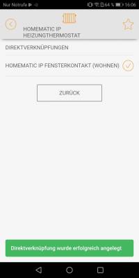 Homematic IP direct links can only be created for Homematic IP devices with each other and here only for heating-based devices such as window sensors and radiator thermostats / wall thermostats. After the direct link, the devices communicate independently with one another; the gateway is not required for communication between the devices. Direct links can be created immediately after teaching, but can also be linked again at a later point in time in the device settings (under Rooms –> Edit–> Select device).